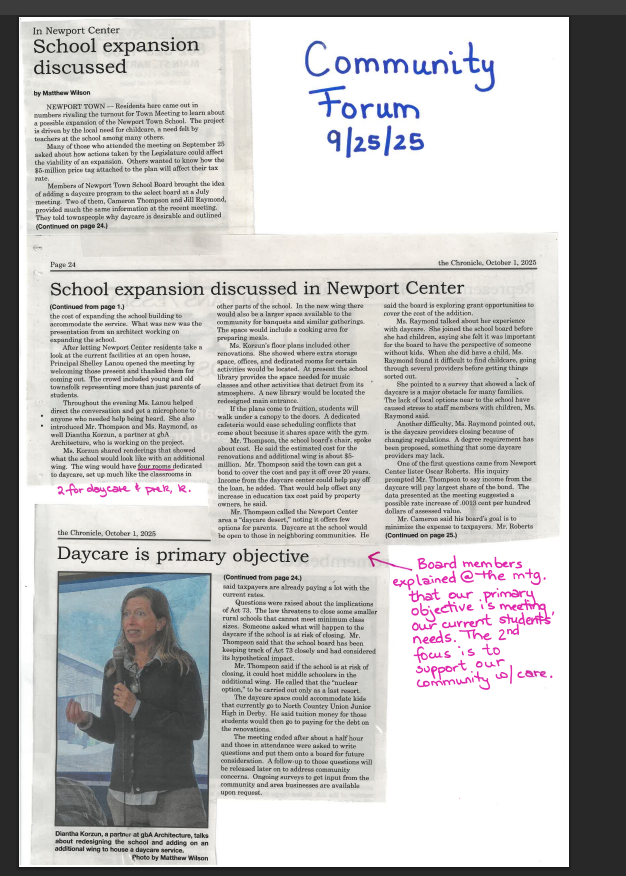 Newport Town School is a community of learners that fosters each person to be an active member of our community and demonstrates independence, respect, empathy, perseverance and problem-solving skills.